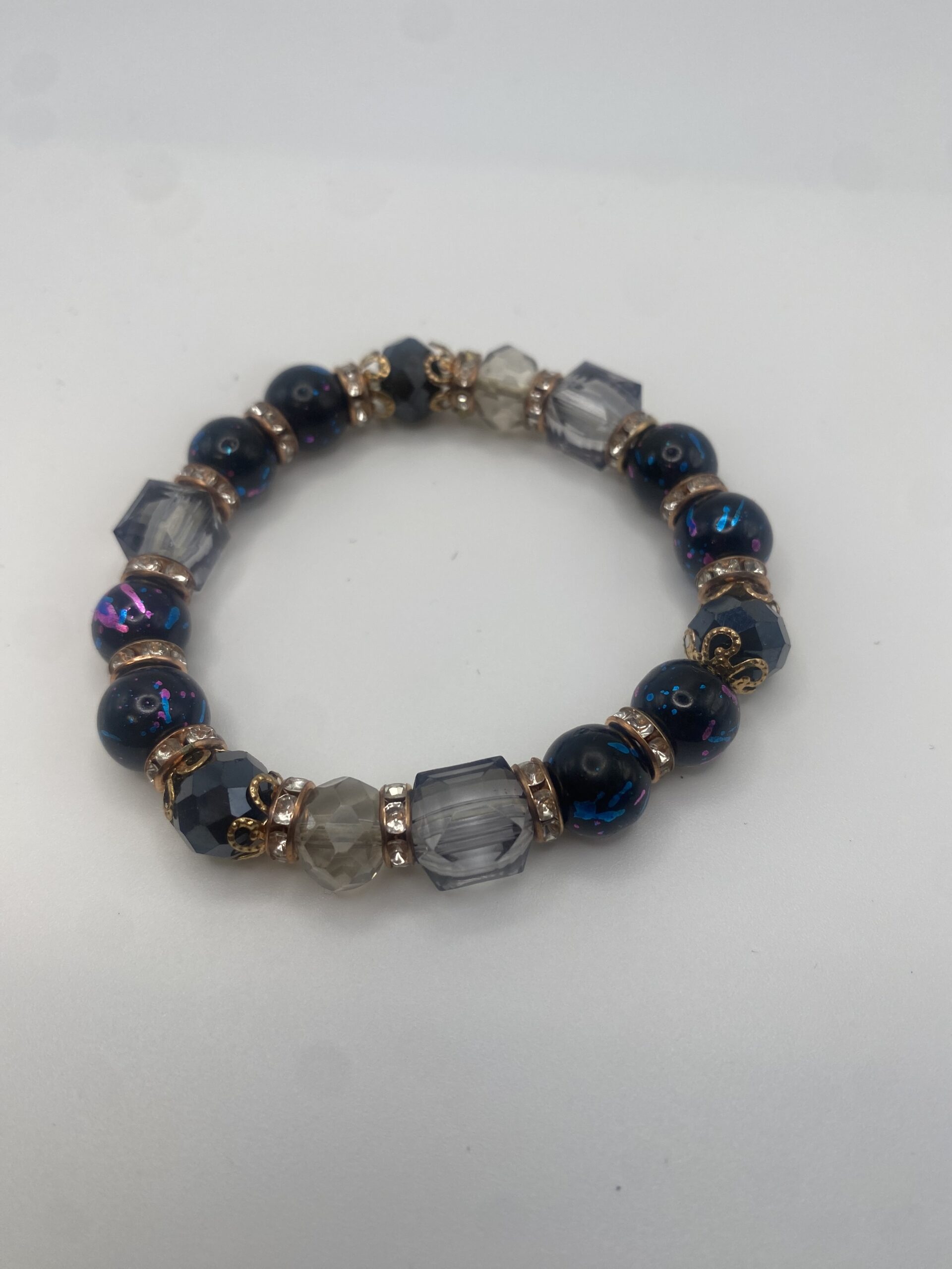 Be the first to review “Dark Bead Stretch Bracelet with Faceted Accents & Gold Spacers”