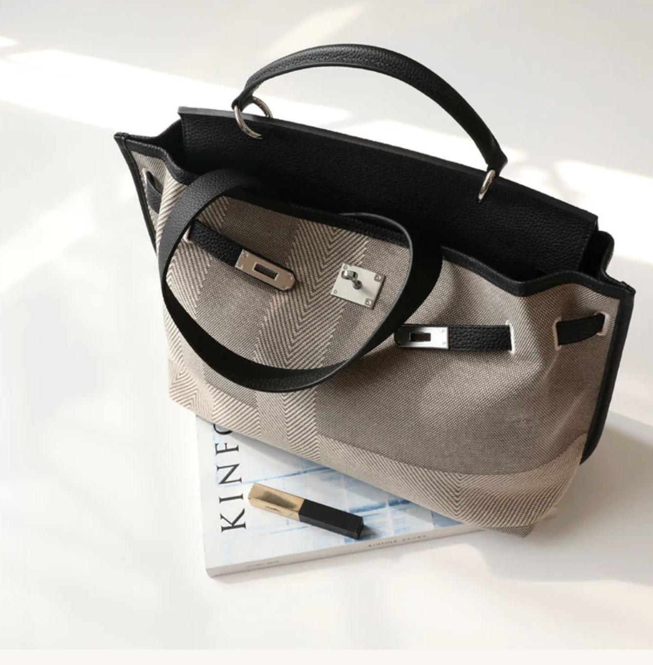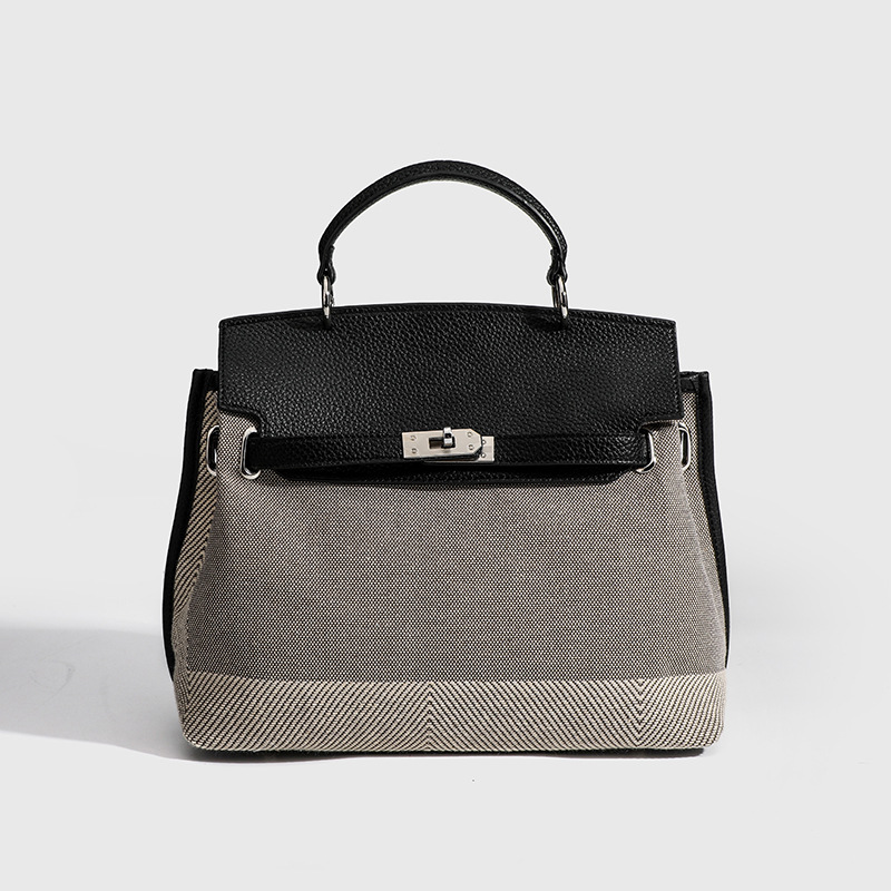 Full-Grain Leather and Canvas bag Large Capacity Canvas Platinum Bag Crossbody