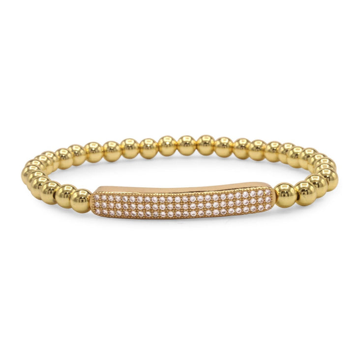 Gold metallic bracelet for women, crafted as a minimalist bracelet for women with a durable stretch bead bracelet design. Perfect for stacking bracelet women, this dainty gold bracelet adds elegance and versatility to any outfit.