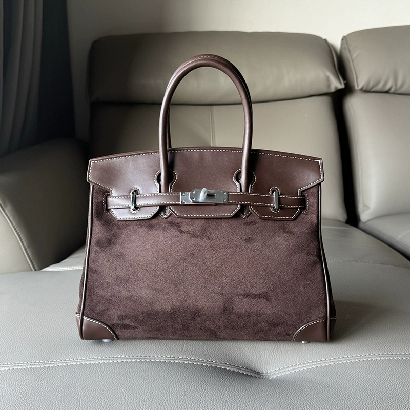 Suede Platinum Bag Suede Genuine Leather Handbag Large Capacity size 30