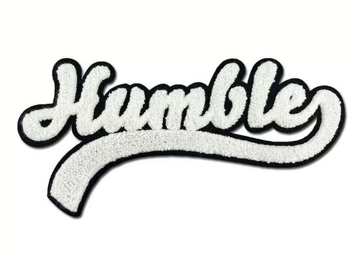 Humble embroidered patch with bold lettering, perfect for statement clothing and accessories.