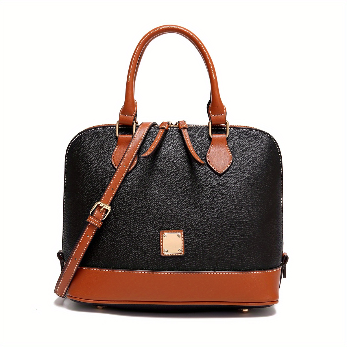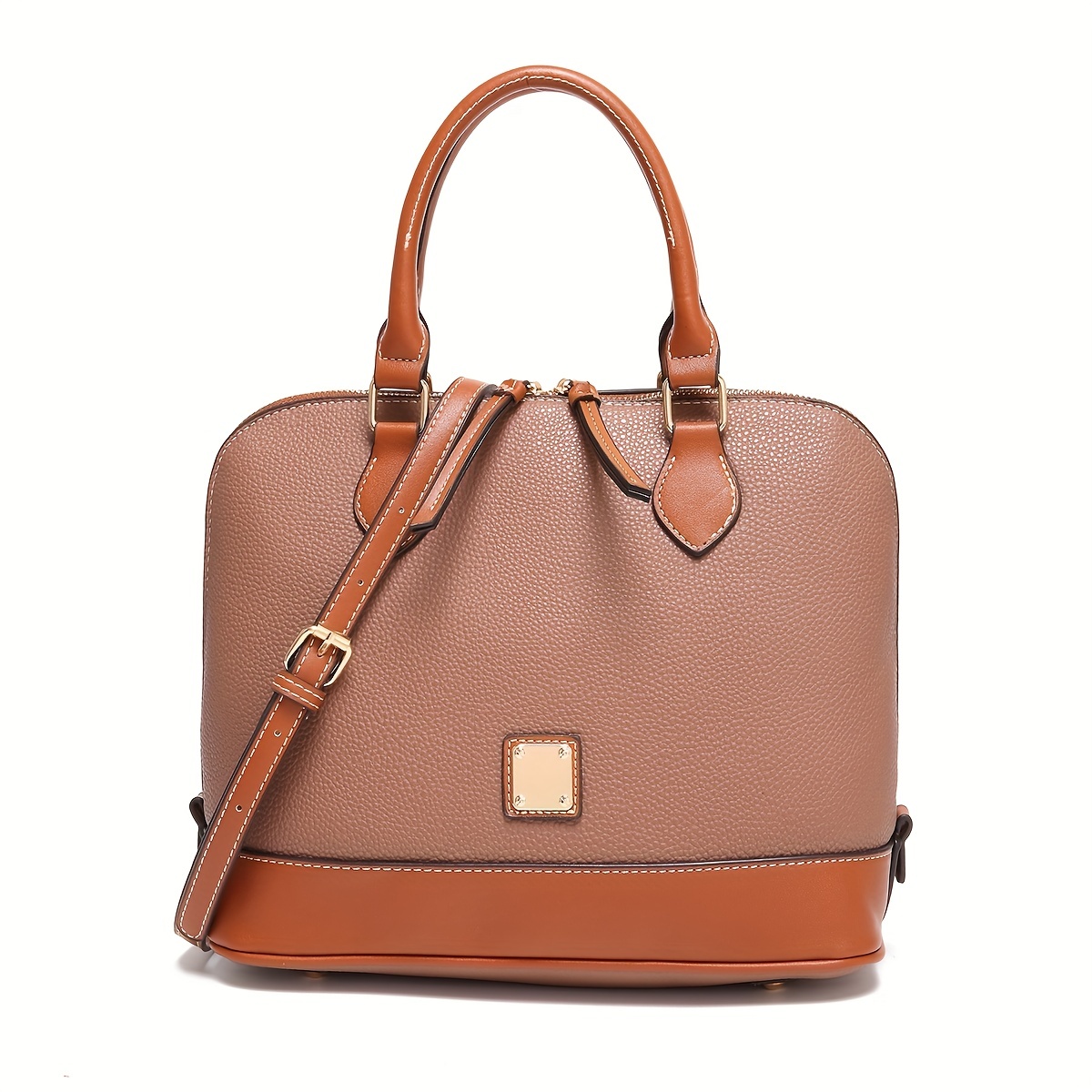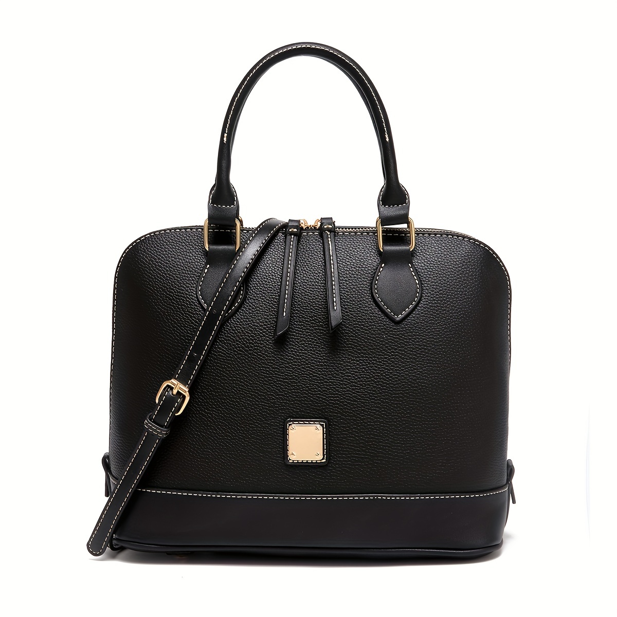 Specification: Pebble Leather Style Dome Satchel Bag – Structured Top Handle Purse with Crossbody Strap – Classic Everyday Handbag