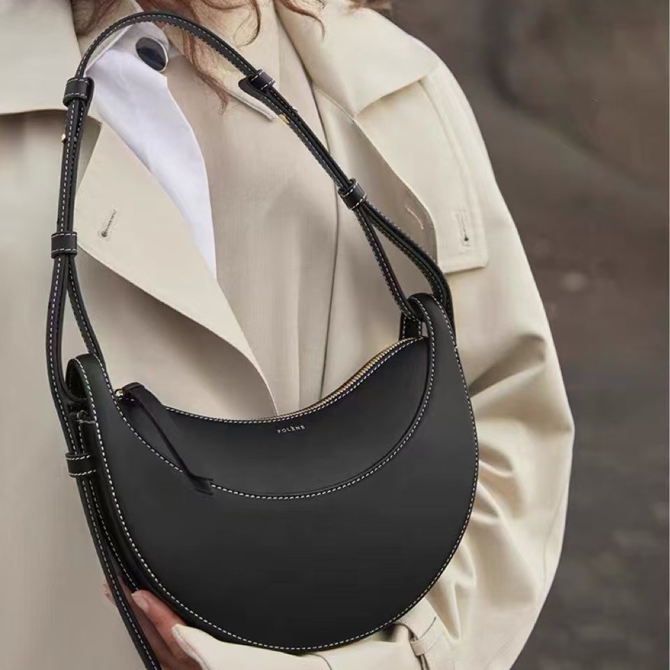 Polenina Inspired Crescent Genuine Leather Shoulder Cowhide Saddle Bag