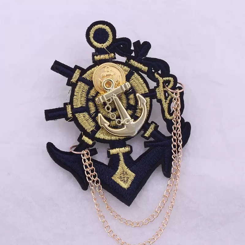 Luxury sailor-style embroidered patch with anchor, wheel, and chain detail.