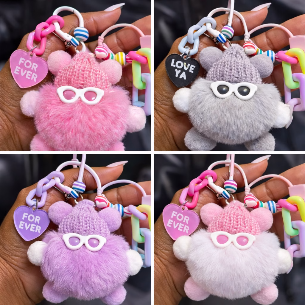 Trendy Pom Charm Keychain | Statement Bag Charm | Cute Character Accessory | Clip-On Charm for Bags & Keys